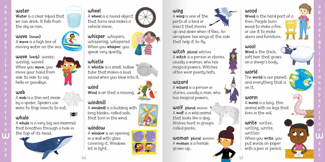 هذا المورد التعليمي الأساسي يساعد الأطفال على استكشاف أكثر من 400 كلمة بتعريفات بسيطة وسهلة الفهم، مما يعزز مفرداتهم وثقتهم بأنفسهم أثناء تعلم القراءة والكتابة.