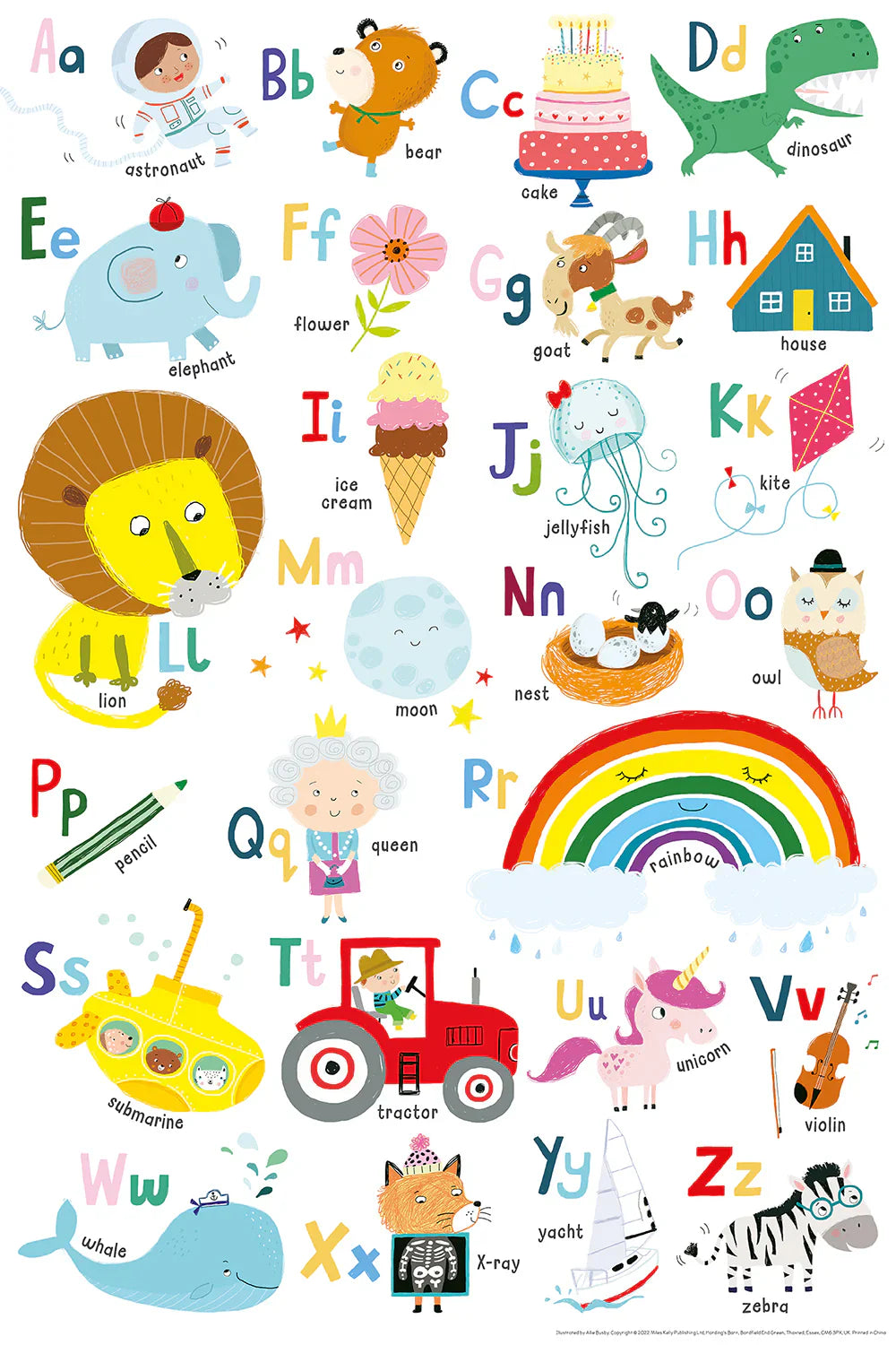 • يشمل بوستر أبجدي بحجم 750 × 500 مم.