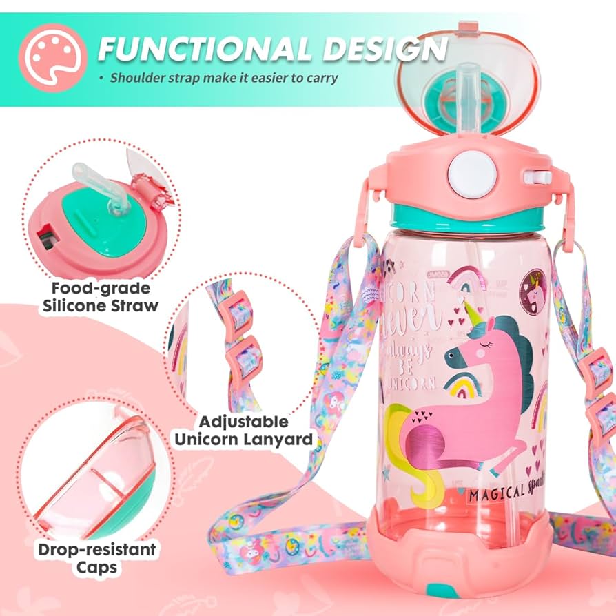 R&B Unicorn Printed Sipper Water Bottle with a capacity of 650ml.