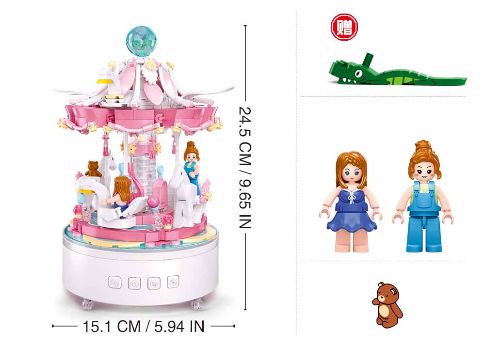 Experience a magical moment with Sluban’s Carousel Music Box! This set features a classic and elegant design, capturing the essence of carnival charm. Watch as the carousel horses gracefully rotate to a delightful melody. Made from high-quality ABS plastic, this set ensures durability and easy assembly. It enhances motor skills and creative thinking, providing hours of fun and learning.
