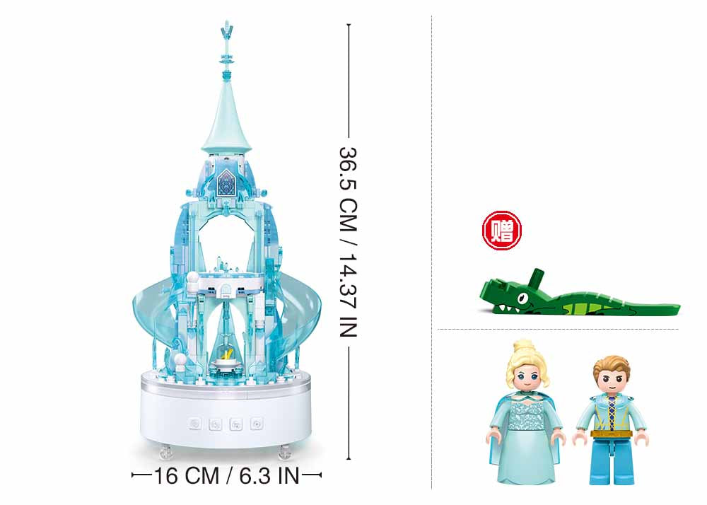 Build a magical Ice Castle with a rotating music box that adds a touch of wonder and joy! This set features a luxurious design and intricate details, bringing the enchanting ice world to life. Made from high-quality ABS plastic, ensuring durability and easy assembly. It enhances motor skills and creative thinking, providing hours of fun and learning.