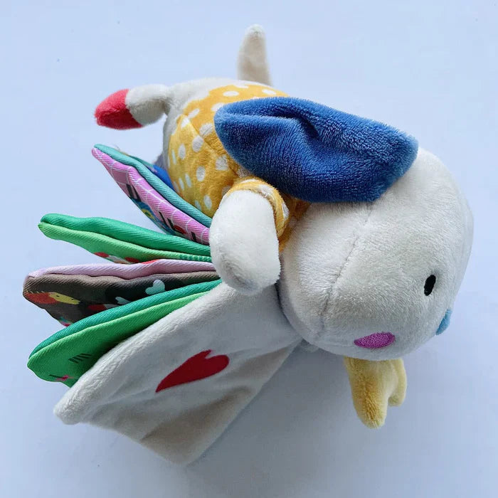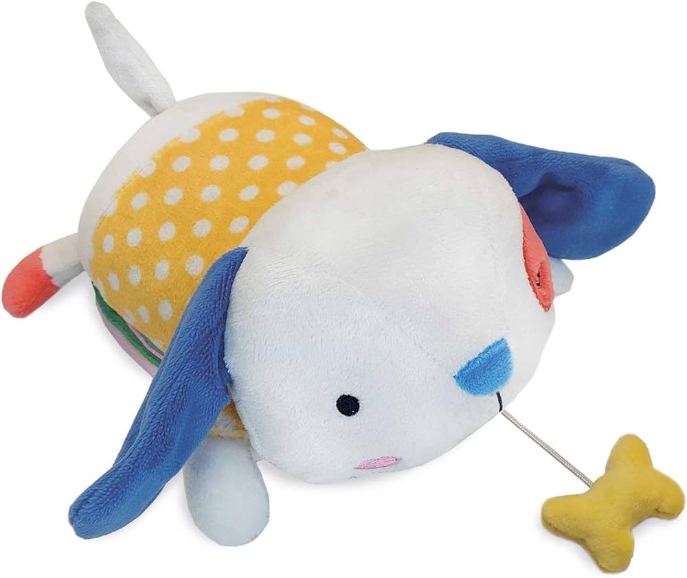 • حيوان ناعم يتحرك عند سحب الحبل، مما يجذب انتباه الطفل بحركته المميزة.