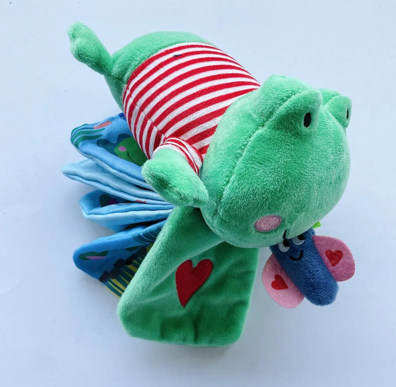 • كتاب قماشي مرفق يحتوي على صفحات تصدر أصوات خشخشة وتصاميم ملونة جميلة تجعل وقت اللعب أكثر متعة.