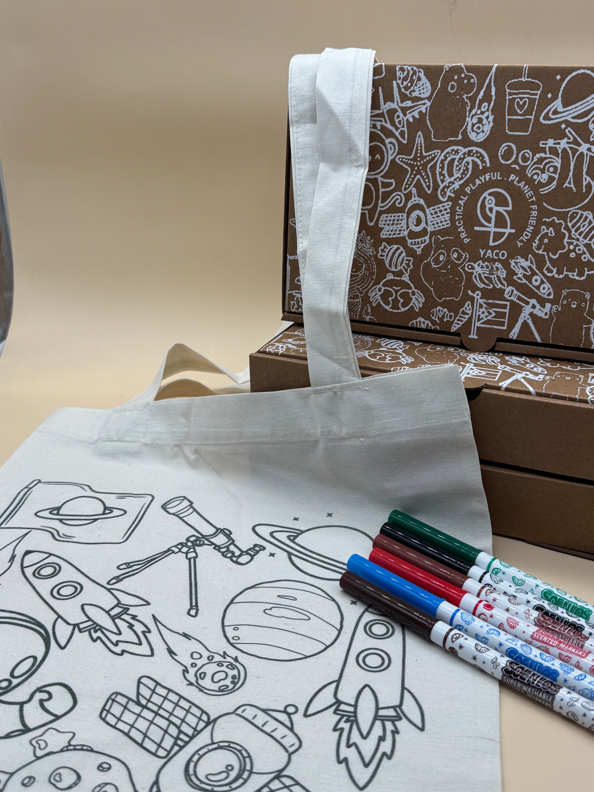 Tote Bags 30x40 cm Available in 5 designs Made from linen fabric Comes with 6 washable colors Packaged in a recyclable and colorable box