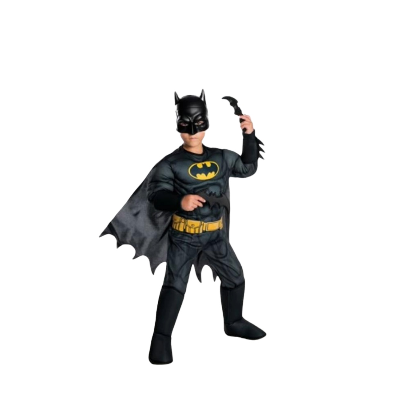 This Batman costume set includes a sleek black jumpsuit, the iconic eye mask, and a cool toy weapon or a themed party, this look is bold, powerful, and unforgettable. Be the legend, not just the costume.