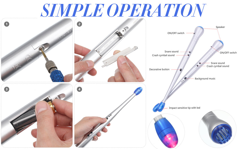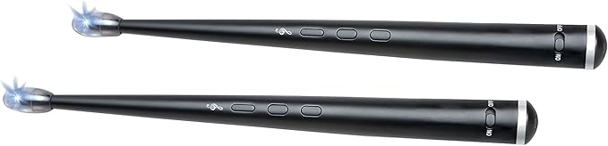 لا حاجة للطبول لصنع الموسيقى خاصة عندما تمتلك هذه العصي الرقمية! الآن يمكنك ضرب أي سطح وإصدار النغمات الموسيقية. تتميز هذه العصي بزر تشغيل وإيقاف في الأعلى، مع مكبرات صوت مدمجة لتستمع إلى إيقاعاتك. بالنسبة للأصوات، يوجد زر لطبلة السنك، زر للموسيقى الخلفية، وزر لصوت الصنج. كما أن الأطراف تضيء أثناء الحركة!