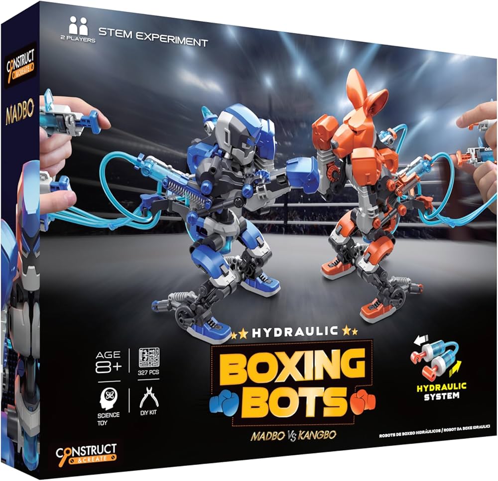 Step into the ring with the Hydraulic Boxing Bots, where two buildable robots go head-to-head in a boxing match powered entirely by hydraulics! This kit offers a hands-on experience with hydraulic systems, giving young engineers a fun and educational way to understand mechanics and fluid pressure. Perfect for kids aged 8 and up, this set teaches engineering principles through play and competitive fun.