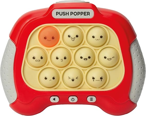 Skill game for your parties! Press the lit Emoji Popper and progress through levels. Flip classic Push Poppers to reset and press the button for a new round of fun.