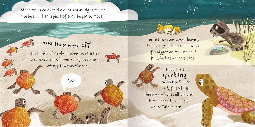 “تيا السلحفاة” هي قصة جميلة من تأليف “كاثرين فيتش”، تحكي عن حياة سلحفاة ضخمة الرأس تُدعى “تيا”. تبدأ القصة عندما تفقس “تيا” على الشاطئ وتخوض رحلتها الشاقة نحو المياه، حيث تجد الأمان في عالم الأعشاب البحرية الساحر ببحر سارجاسو. هناك، تتعرف على العديد من الأصدقاء من الحيوانات البحرية الغريبة والمميزة.