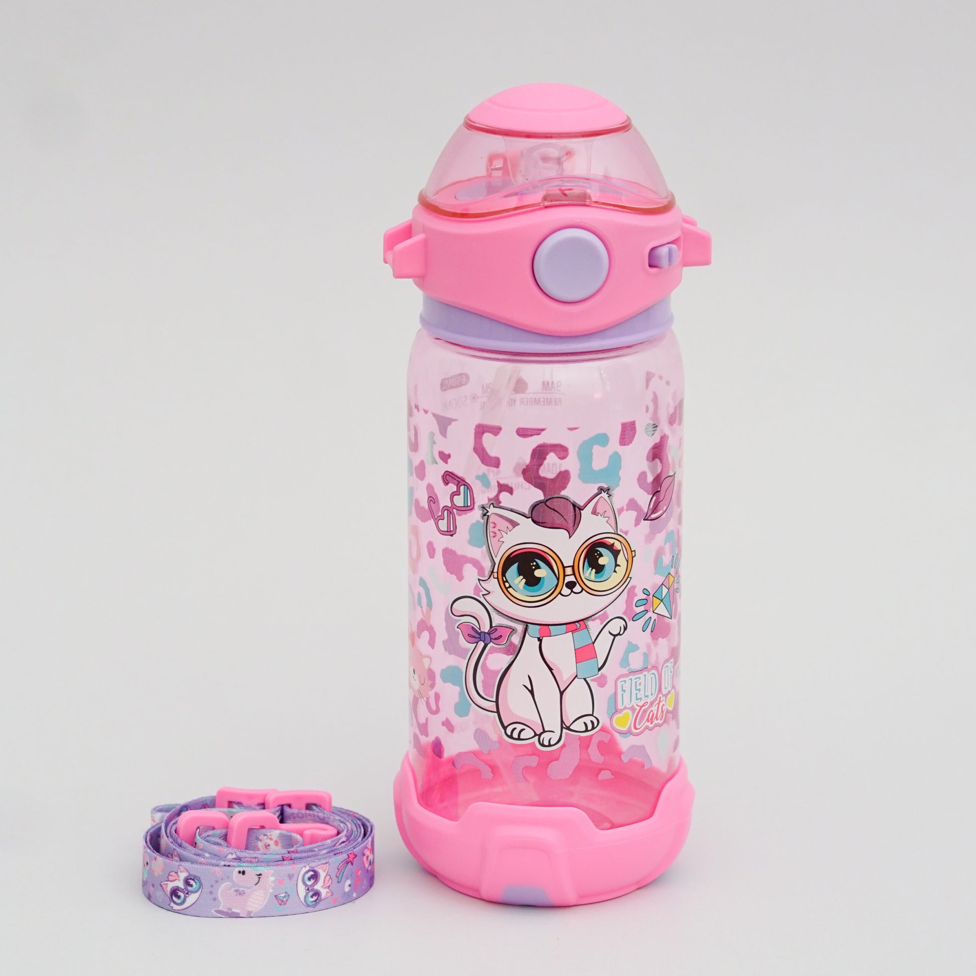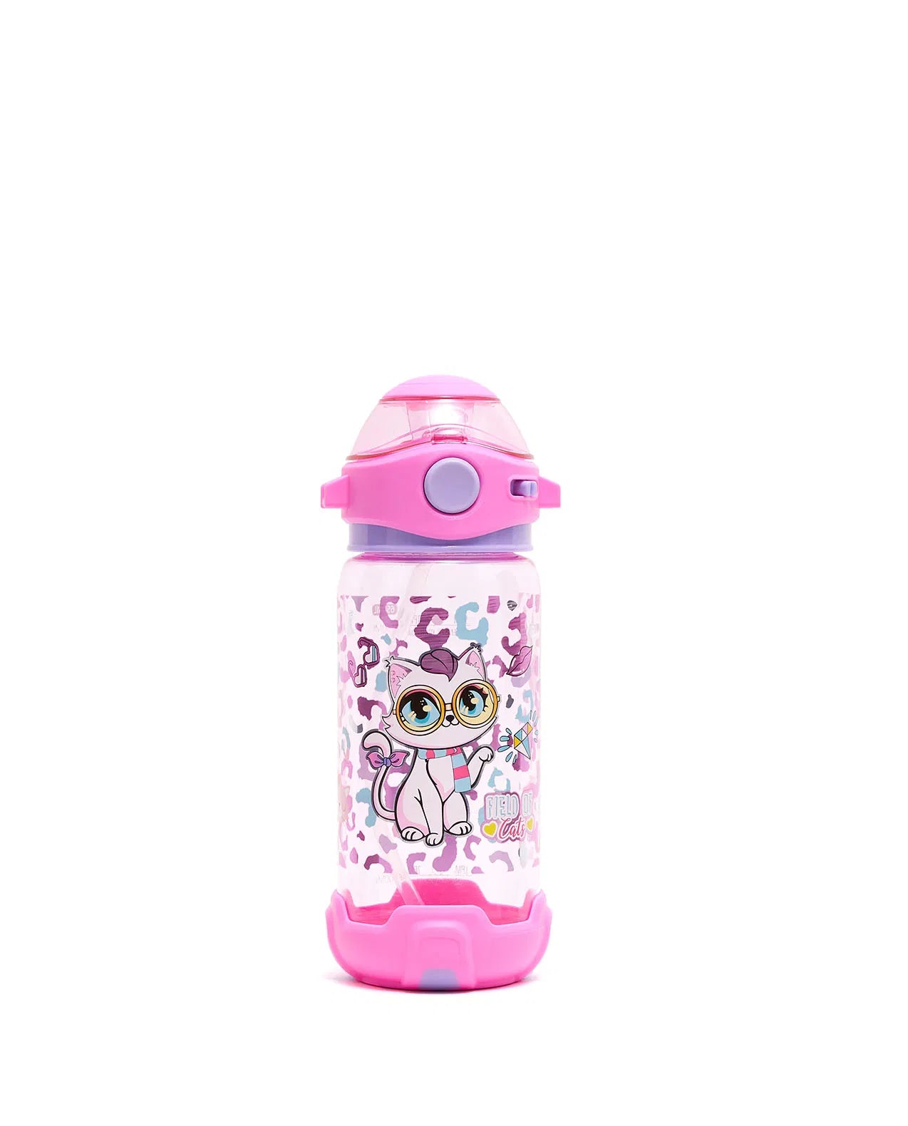 VEST water bottle with a straw, featuring a "Field of Cats" design