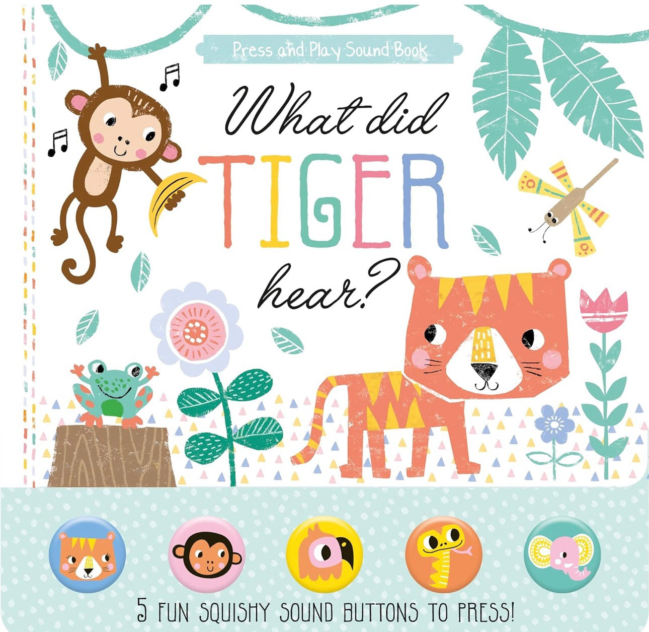 Go exploring with Tiger in the jungle, what kind of animals will you meet? And what will they sound like? This fun board book is beautifully illustrated and comes with 5 squishy silicon sound butons for little hands to try out! Sound Books can help encourage language development and a love for reading from an early age. As children follow the words on each page, they'll develop their reading skills while enjoying a multi-sensory story experience that makes reading books fun. Our sound button book offers an immersive reading experience that engages young minds