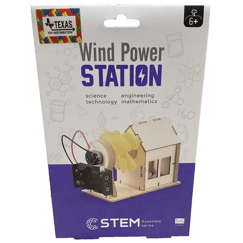 This wooden STEM construction kit builds a battery-operated Wind Power Station! Teaches the principle of power generation as the fan blades of the generator are affected by airflow. At a certain speed electrical energy can light up the LED lights.