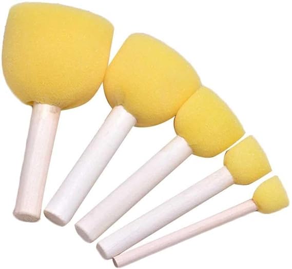 Yellow Sponge Dabber Set/Spouncer Set of 5pcs Wooden Handle dabbers